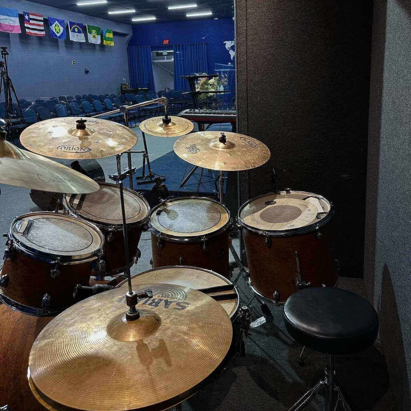 Conheça nossa Cabine Acústica para Bateria, projetada sob medida para pastores que valorizam a excelência musical em suas cerimônias.