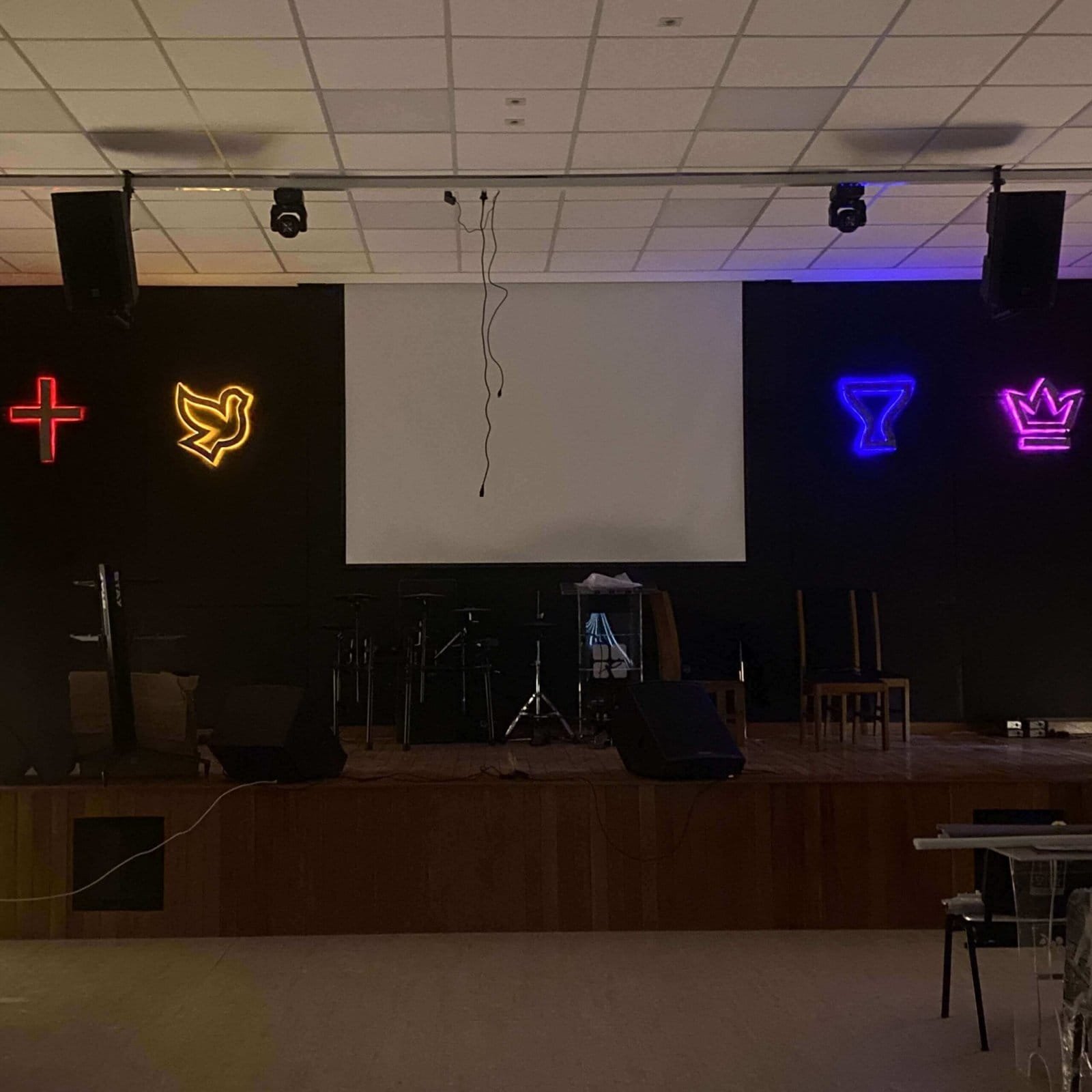 Pois com o LED, seu letreiro ganha vida, iluminando o espaço sagrado de forma sublime.